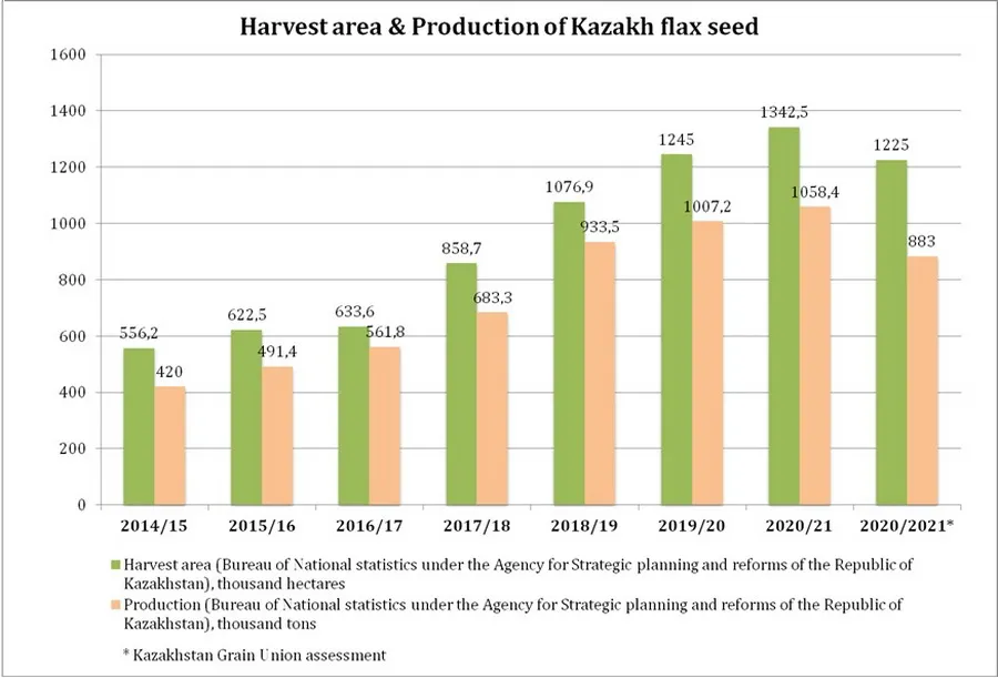 到2020年底,哈萨克斯坦保持了亚麻生产的世界领先地位。