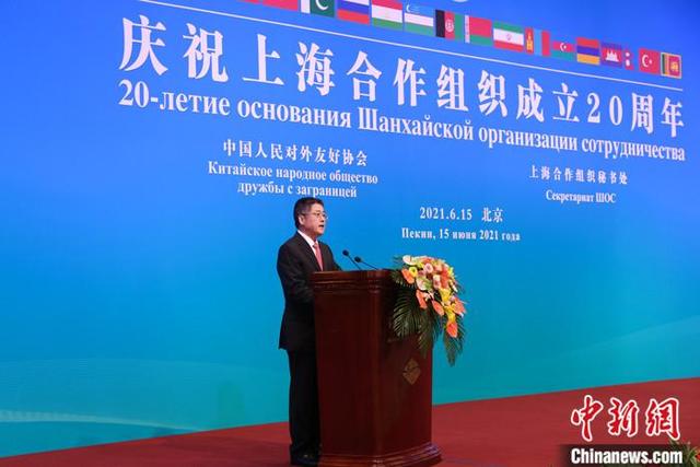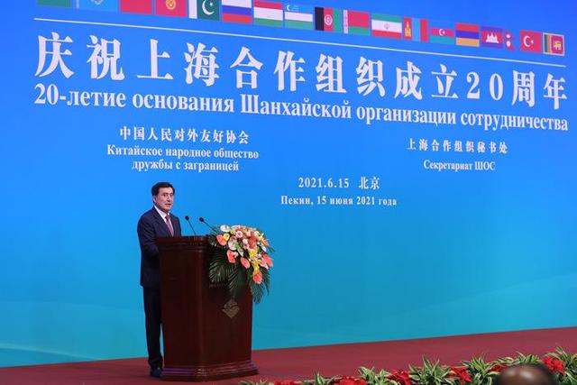 6月15日,中国人民对外友好协会与上海合作组织秘书处在北京共同举办庆祝上合组织成立20周年招待会。中国国务委员兼外长王毅以视频方式发表致辞,上合组织秘书长诺罗夫、外交部副部长乐玉成代表王毅国务委员兼外长出席并致辞,中国人民对外友好协会会长林松添主持招待会。