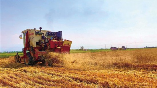 机声隆隆,夏收正酣。在杨凌农业高新技术产业示范区,广袤麦田里忙碌着的,有勤劳的农家人,有现代化大型农业机械,还有众多育种和推广良种良技的专家学者。金黄饱满的麦穗里,饱含农家人的致富经、育种人的工匠情、农科城的现代科技范儿。