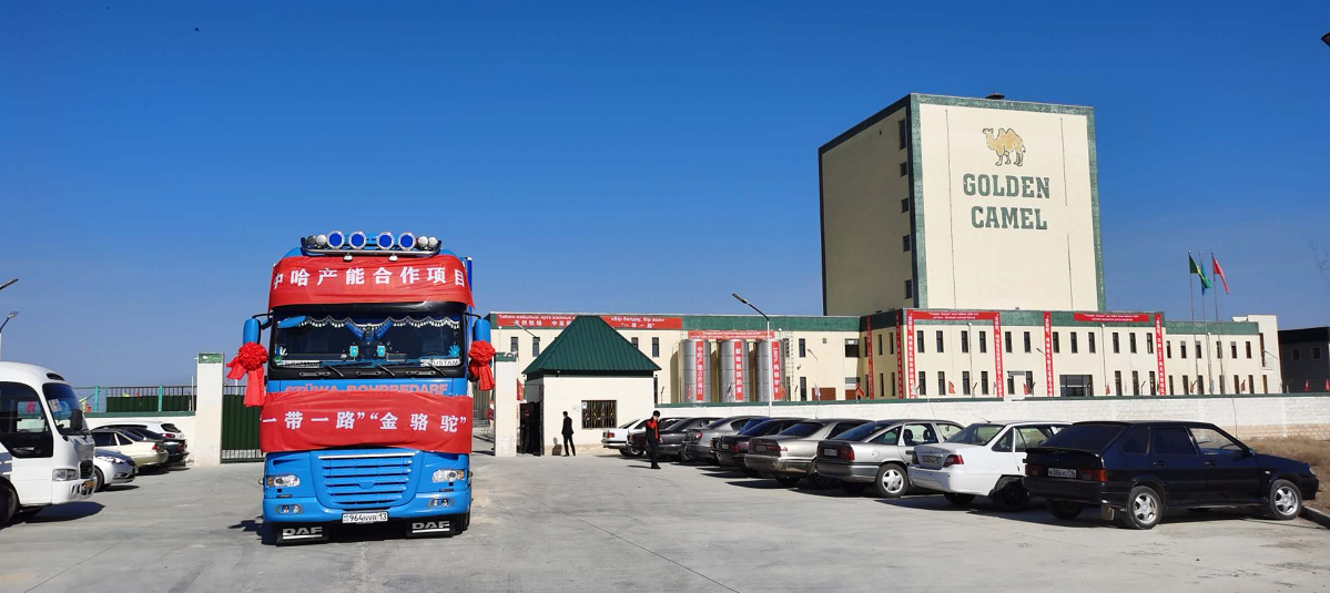金骆驼集团奶粉厂是中哈产能合作首批重点项目之一。项目于2017年1月开工建设,2019年9月顺利竣工,哈首任总统纳扎尔巴耶夫亲自出席工厂开工仪式。项目总投资额3200万美元,设计液奶日加工能力100吨。目前,金骆驼集团已经成为哈萨克斯坦最大的驼乳粉加工企业,为拉动哈畜牧业振兴发展,带动当地居民就业增收,提升乳制品加工能力发挥了重要作用,得到哈政府主管部门和图尔克斯坦州政府的高度评价。