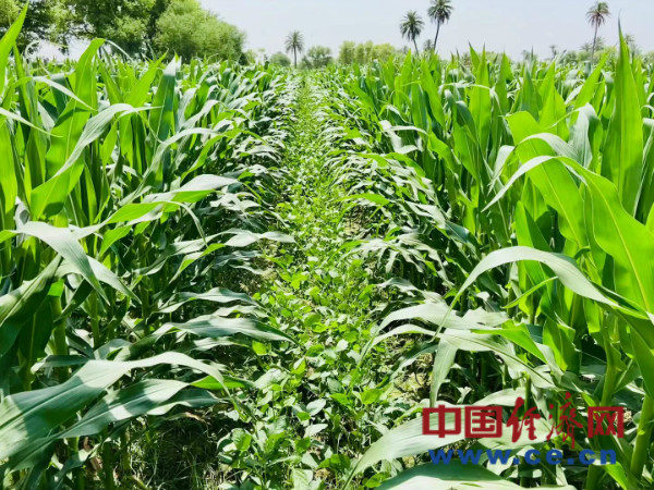 今年5月,巴基斯坦旁遮普省巴哈瓦尔普市的玉米-大豆带状复合种植技术试验示范田里的作物茁壮成长。穆罕默德·阿里·拉扎供图