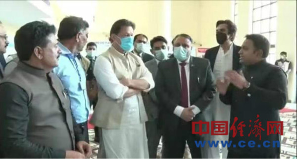8月11日,四川农业大学巴基斯坦籍博士后穆罕默德·阿里·拉扎向巴基斯坦总理伊姆兰·汗展示来自中国的玉米-大豆带状复合种植技术。穆罕默德·阿里·拉扎供图