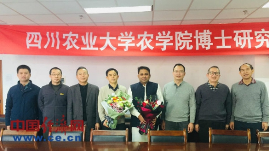 2019年12月,四川农业大学巴基斯坦籍博士后穆罕默德·阿里·拉扎与恩师杨文钰在博士研究生答辩会上合影留念。穆罕默德·阿里·拉扎供图