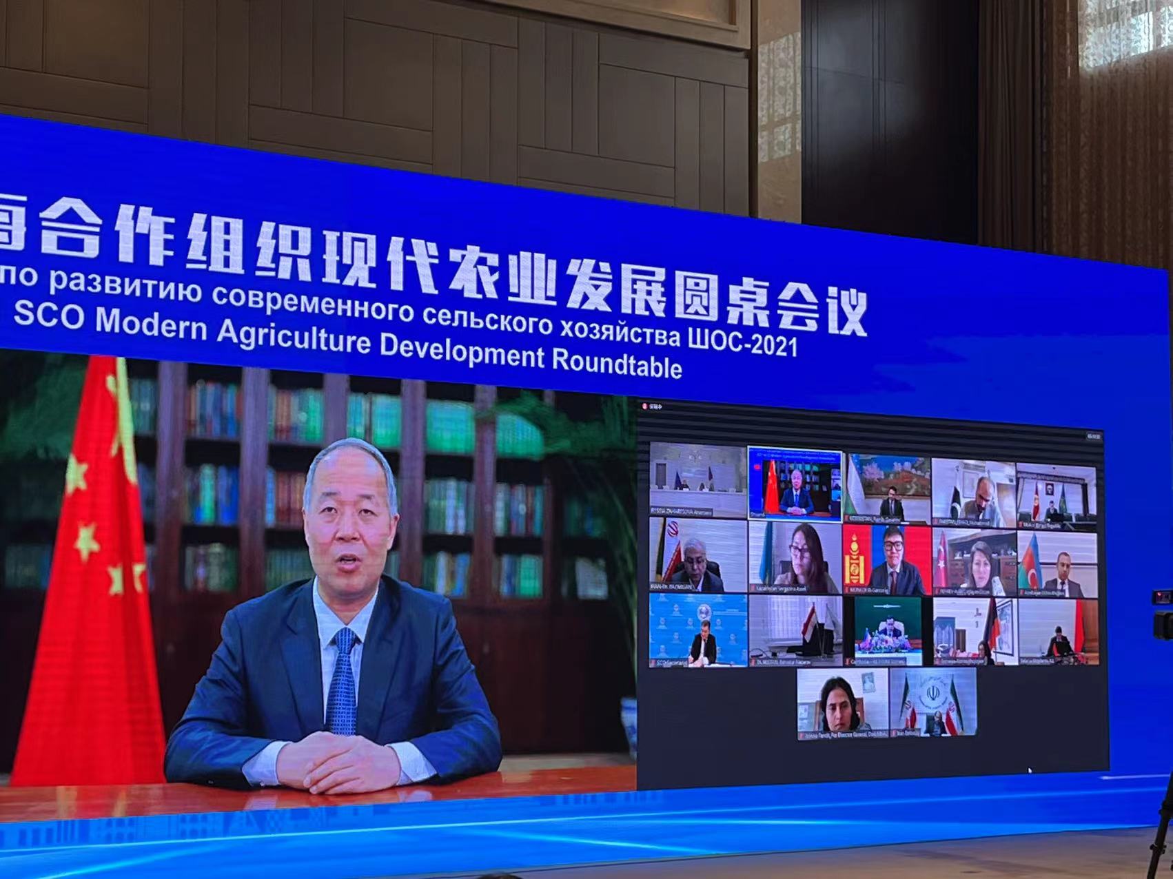 本网讯 10月22日,2021上海合作组织现代农业发展圆桌会议以视频方式召开。会议由陕西省人民政府和上合组织共同主办,16个国家围绕“加强区域农业合作,保障粮食安全”这一主题展开研讨。中国农业农村部副部长马有祥出席并致辞。