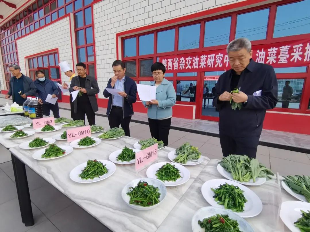 近年来,该中心一直致力于菜——油两用油菜品种的研究培育,筛选出了秦优919等优质高产、菜薹品质好、营养丰富的油菜新品种。此次油菜菜薹采摘品鉴会在大田通过初步筛选,从18个参展品种中挑选10个品种进一步品鉴,品鉴指标包括品相、口感和食味三项。现场通过对每个品种的菜薹烹饪、品尝进行盲评打分,优选出品相好、口感清脆、味清甜,纤维含量低,叶柄短,适宜多种烹饪方式的高品质菜薹品种。