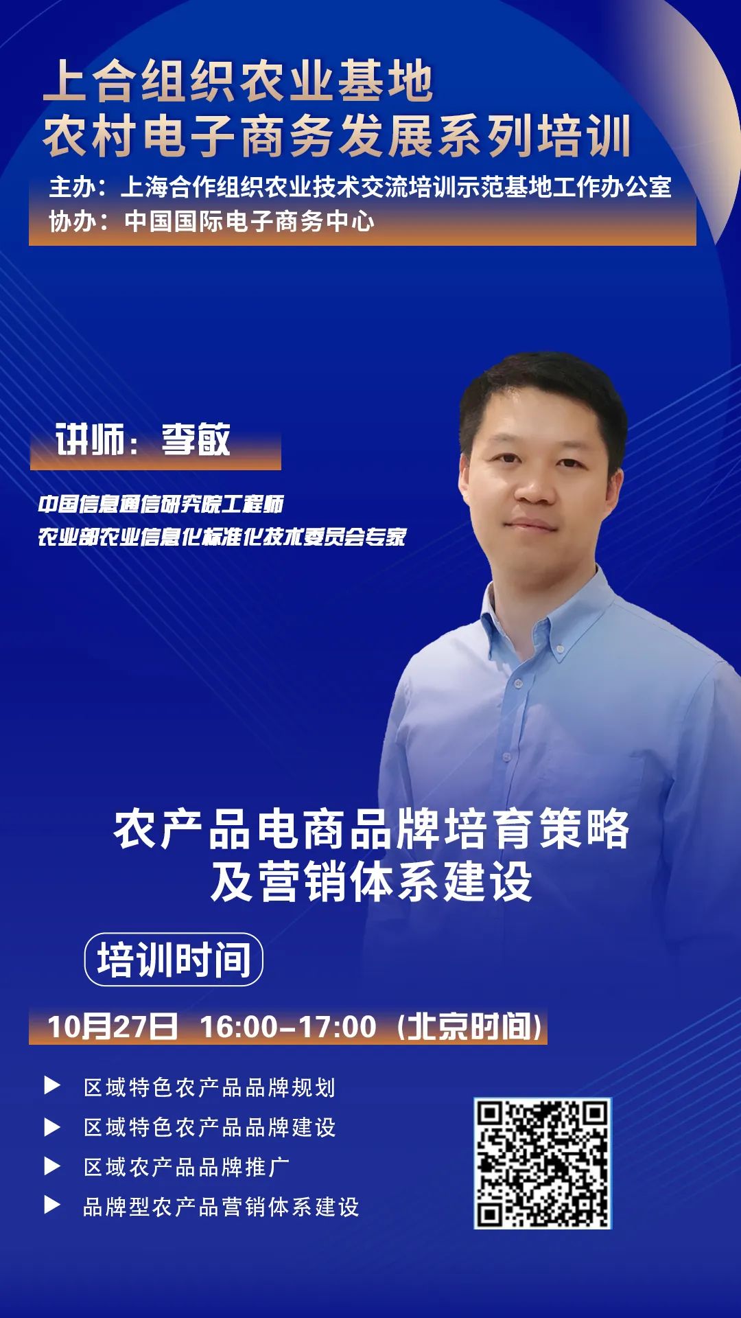 2022年上海合作组织农业技术交流培训示范基地将持续发挥平台作用,面向相关国家举办5期农村电子商务发展系列培训。内容涵盖农村电商战略规划与产业布局、县域电商发展政策解读与模式分析、农产品电商品牌培育策略及营销体系建设、农产品电商项目投资与建设运营模式创新、农村电商人才培养等,第三期主题培训——农产品电商品牌培育策略及营销体系建设将于10月27日上线。