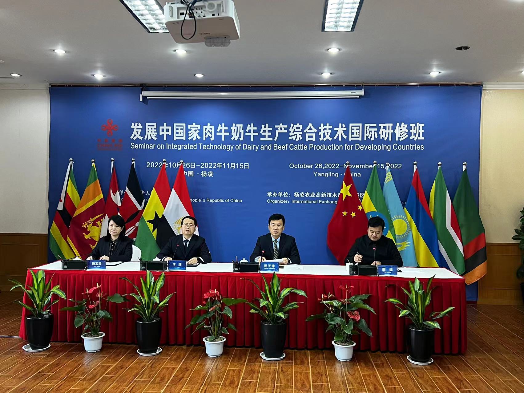 11月15日,由中华人民共和国商务部主办、杨凌示范区承办的发展中国家肉牛奶牛生产综合技术国际研修班在杨凌结业。省商务厅、示范区管委会等相关单位领导出席结业典礼。来自埃及、埃塞俄比亚、加纳、哈萨克斯坦、肯尼亚、尼泊尔、斯里兰卡、赞比亚、津巴布韦等11个国家的38名学员以线上方式参加了结业典礼。