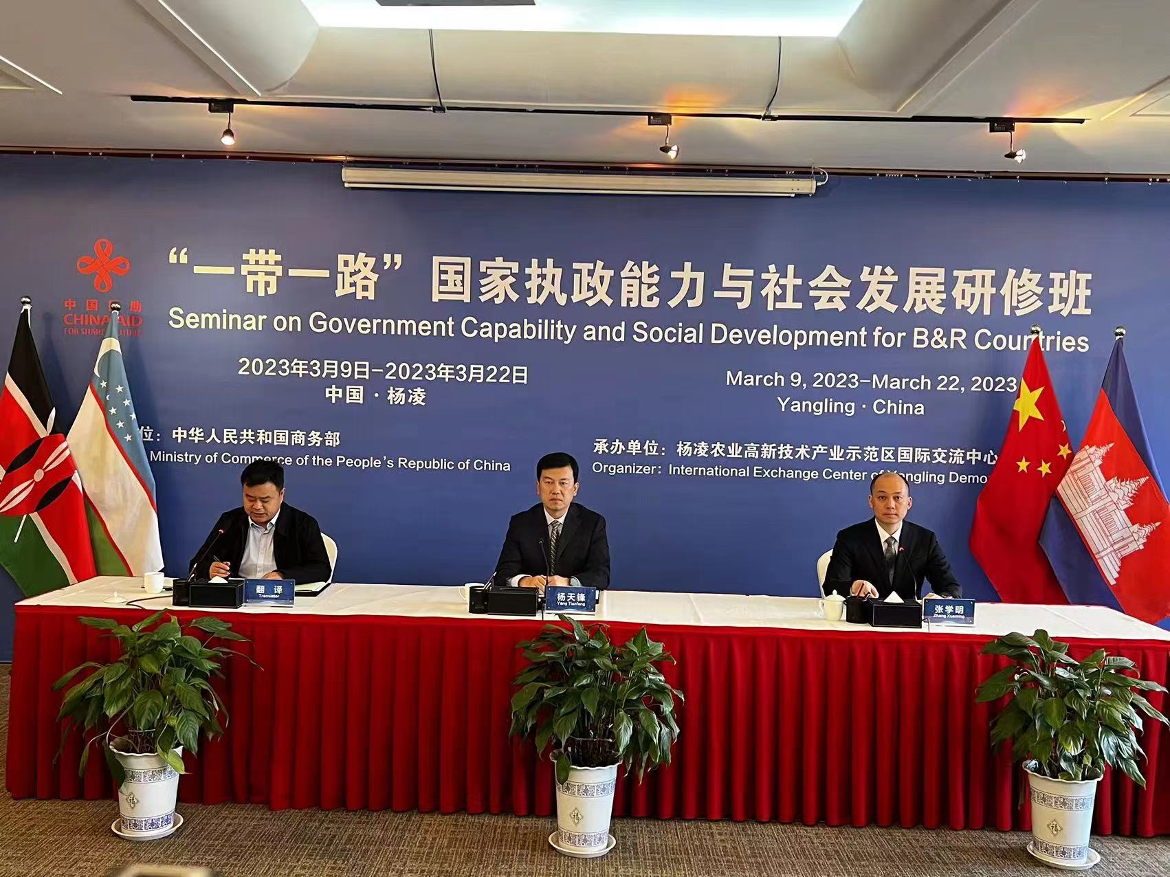 3月9日,由中华人民共和国商务部主办,杨凌示范区承办的“一带一路”国家执政能力与社会发展研修班在杨凌开班。陕西省商务厅、杨凌示范区管委会等相关单位领导出席开班仪式并讲话。来自柬埔寨、肯尼亚、马拉维、巴基斯坦、乌兹别克斯坦等5个国家的28名学员线上参加开班仪式。