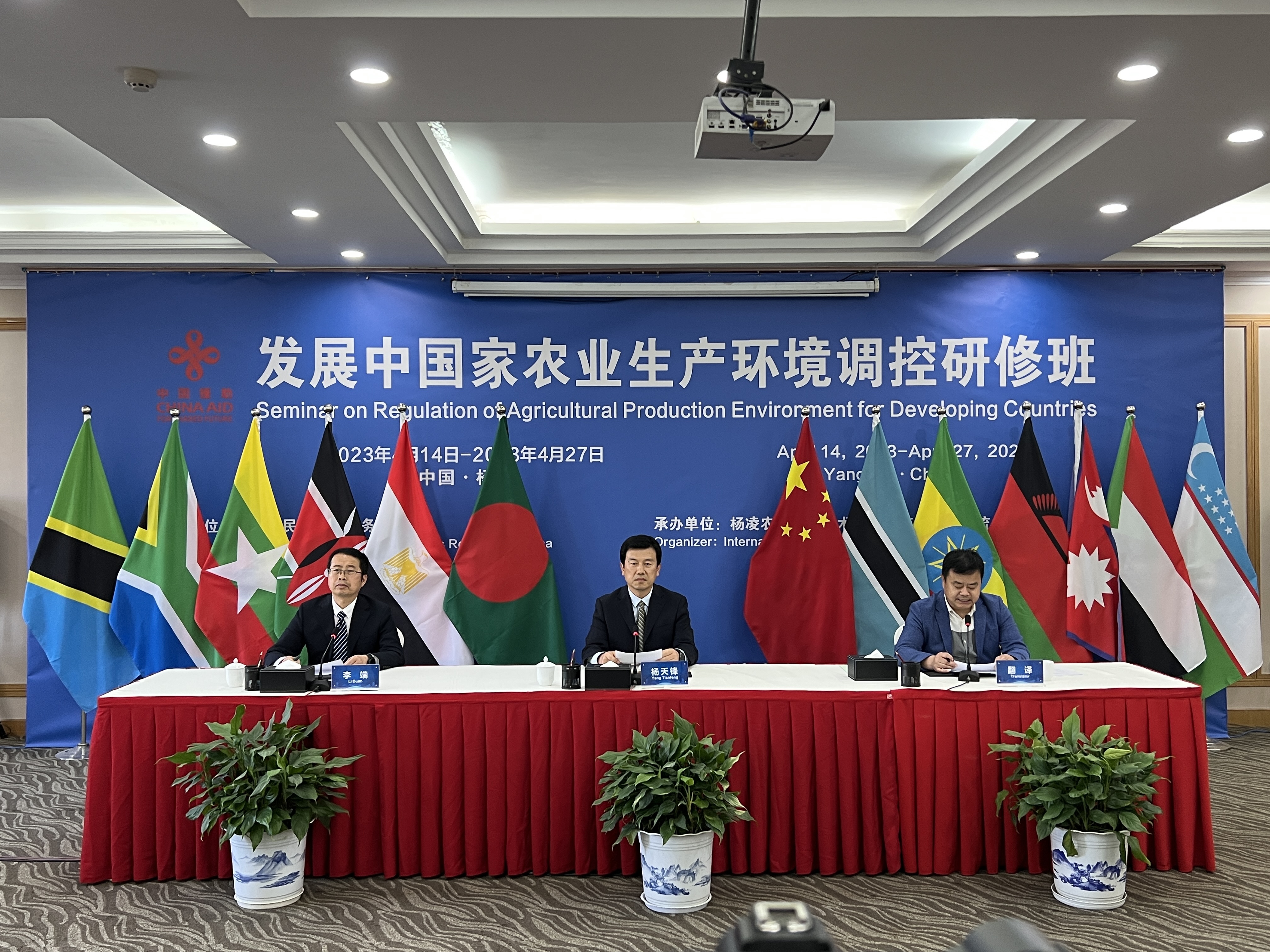 4月14日,由中华人民共和国商务部主办,杨凌示范区承办的发展中国家农业生产环境调控研修班在杨凌开班。杨凌示范区管委会等相关单位领导出席开班仪式并致辞。来自孟加拉国、博茨瓦纳、埃及、埃塞俄比亚、肯尼亚、马拉维等13个国家30名学员线上参加开班仪式。