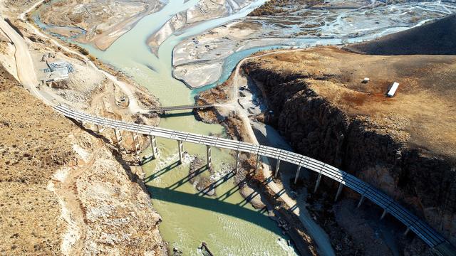 这是2020年10月27日在吉尔吉斯斯坦拍摄的新北南公路二期工程施工现场。新华社发