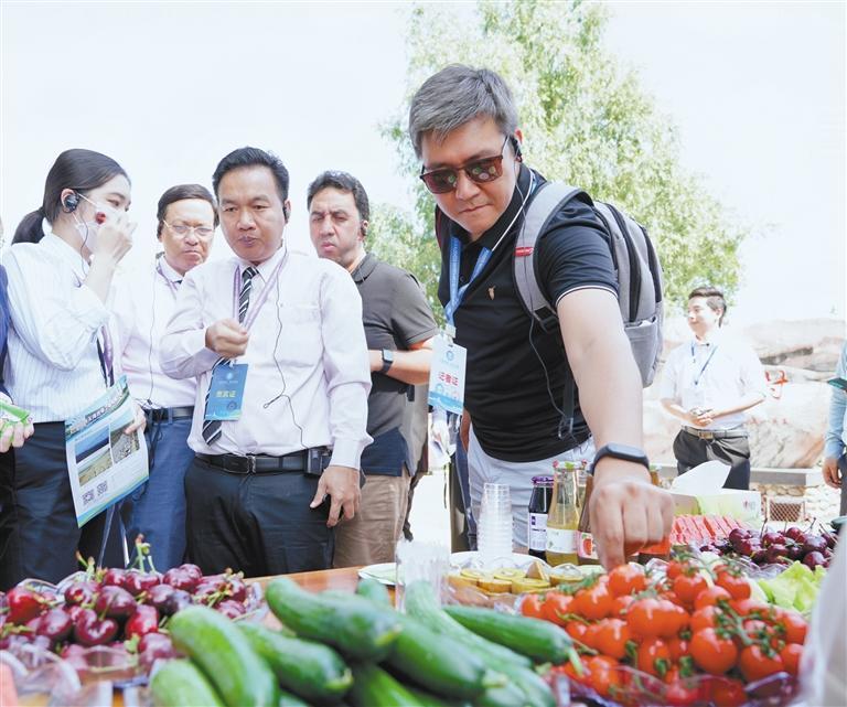 杨凌农业高新技术产业示范区是农业科技促进减贫事业发展的样板地区,是中国特色减贫模式的缩影。5月30日下午,上海合作组织减贫和可持续发展论坛考察团走进杨凌智慧农业示范园、中国旱区节水农业研究院、五泉镇王上村,170余名中外嘉宾感受减贫和可持续发展领域的“中国智慧”。 在杨凌智慧农业示范园,智能温室里的番茄藤蔓被高高吊起、整齐排列。借助数字化水肥精准管理和智能化远程控制技术,番茄生长所需的营养可通过滴箭分配到植株根部附近,实现精准施肥。 “这里的蔬菜生长不用水也不用土吗?”看到眼前的蔬菜根部没有一块泥土,阿富汗STR新闻首席执行官默罕默德·阿利姆·哈莫杜拉好奇地发问。 现场技术人员解释道,智能温室里使用营养液为植物供给营养。默罕默德·阿利姆·哈莫杜拉不禁称赞:“这是真正的智慧农业!” 目前,“科技引领、企业主体、多方协同、政府推动”的示范园建设运营模式已推广到俄罗斯、哈萨克斯坦、吉尔吉斯斯坦、塔吉克斯坦、乌兹别克斯坦、巴基斯坦、白俄罗斯等国。 一直以来,中国旱区节水农业研究院坚持立足陕西、面向旱区、辐射全球,揭示作物生命健康需水过程,发展旱区节水农业理论,构建旱区节水农业技术体系,建立区域农业高效用水模式,开发节水灌溉技术与装备,支撑引领旱区现代农业发展。 考察团走进中国旱区节水农业研究院,作物高效生产、作物育种、农业节水等多个研究方向的成果在此集中展示。其中,食用菌智能环境调控系统研发项目吸引了不少嘉宾的目光。 “食用菌智能环境调控系统研发项目中的智慧食用菌工厂解决方案系统,可实现智慧化食用菌工厂智能管理,对菇房进行温度、湿度、二氧化碳浓度、光照强度的精准控制,最终实现‘减碳增产’。”该项目负责人、西北农林科技大学农业人工智能硕士刘行行介绍。 塔吉克斯坦“亚洲快讯”通讯社编辑总监纳季罗夫·巴赫马尼奥尔对此颇有兴趣。“中国的朋友慷慨地和我们分享先进的技术,希望我们国家的人可以多来中国学习交流,将先进的农业技术带回去,满足国内市场需求。”纳季罗夫·巴赫马尼奥尔说。 王上村历史悠久,文化特色鲜明,是“全国乡村旅游重点村”“中国美丽休闲乡村”。考察团的嘉宾走进王上村的乡村振兴学堂、科举体验馆、精品民宿和农家小院等,与当地村民拉家常,了解王上村在乡村振兴道路上的“跨越式发展”。 “我是第一次来到杨凌,我觉得王上村非常漂亮,基础设施很好、很有特点。希望这个村庄可以更多地被推向国际,让更多国际市场的游客了解如此美丽的地方。”马尔代夫日报高级记者马尔祖克·艾哈迈德·阿赞说。 目前,王上村大力发展民宿餐饮、研学旅行、农科培训等新业态,2022年村民人均可支配收入达21475元,是陕西省农村可持续发展和农民共同富裕的样板。 科威特《报章报》顾问欧勒延·哈姆扎非常喜欢杨凌的自然环境与人文环境。“一路上,我看见了很多漂亮的建筑,也遇见很多热情友好的人民,不论是这里的村庄还是城市,都给我带来了很好的体验。回国之后,我要让我的朋友们都来感受一下这里的风土人情。”欧勒延·哈姆扎说。