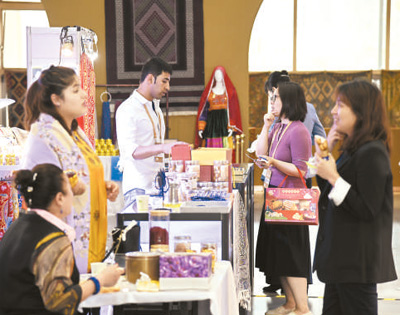 6月15日,参会者在2023上海合作组织国际投资贸易博览会上交流。