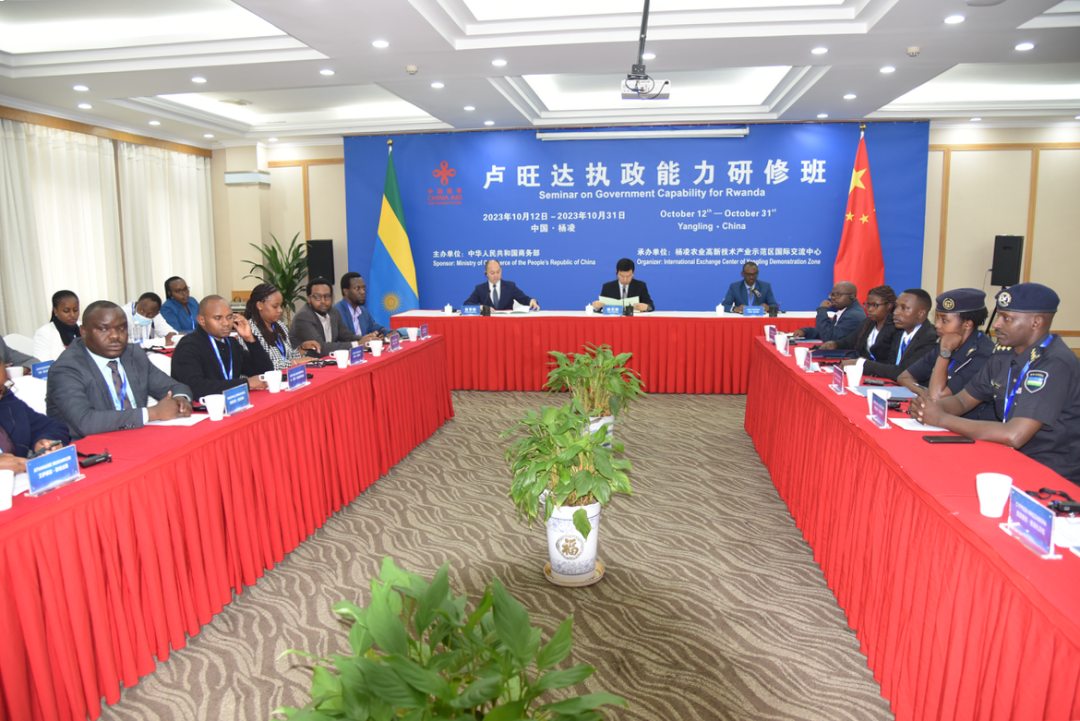 10月12日,由中国商务部主办、杨凌示范区管委会承办的卢旺达执政能力研修班在杨凌开班,来自卢旺达的23名官员参加。