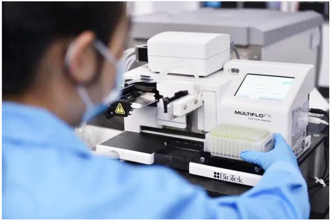 图为工作人员正在进行玉米DNA提取,为分子检测做准备工作。(图片由先正达集团中国提供)