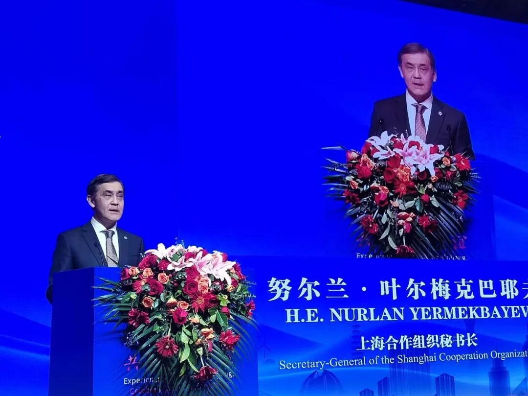 叶尔梅克巴耶夫在致辞中强调了新疆作为中国向西开放“桥头堡”和上合组织国家跨区域合作重要桥梁的特殊意义。