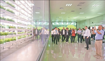 日前,上海合作组织减贫和可持续发展论坛在陕西西安举行。图为部分与会人员在杨凌示范区进行实地考察等活动。新华社记者 邵 瑞摄