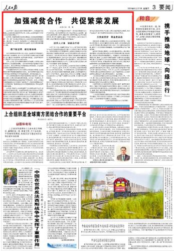 8月27日,《人民日报》3版头条刊发主题报道《加强减贫合作 共促繁荣发展》,聚焦杨凌示范区依托上合组织农业基地,与上合组织国家广泛开展农业技术合作和农业技术援外培训,助力当地农业和减贫事业发展的生动实践。报道全文如下:
